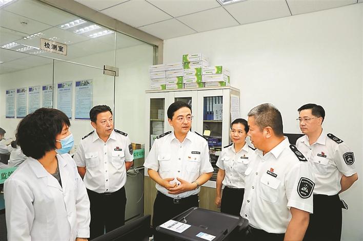 4月18日,时任市市场和质量监管委副主任郭驰率队检查宝安区沙井街道快检室运行情况。