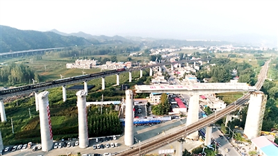 8月14日,我国在建的最长重载铁路——蒙华铁路峡河特大桥转体梁在38.9米的高空成功转体。这标志着我国重载铁路桥梁转体高度创下新纪录。