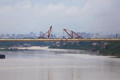 设计施工中创造出四个全国首次:首次将索塔钢锚箱结构应用于高速铁路大跨度斜拉桥;首次将锚拉板应用于高速铁路大跨度斜拉桥;首次将箱形钢-混凝土组合梁用于高速铁路大跨度斜拉桥;首次在高速铁路大跨度斜拉桥上运用新型的钢-混结合段构造连接技术。