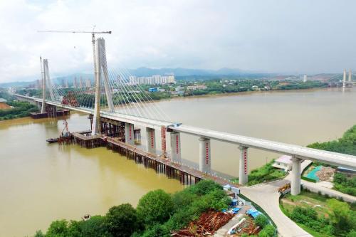 中新网北京8月31日电(记者 张尼)记者从中国铁路总公司获悉,31日,全国首座设计时速350公里大跨度高速铁路斜拉桥——昌赣高铁赣州赣江特大桥成功合龙,为昌赣高铁按期建成通车运营奠定了坚实基础。