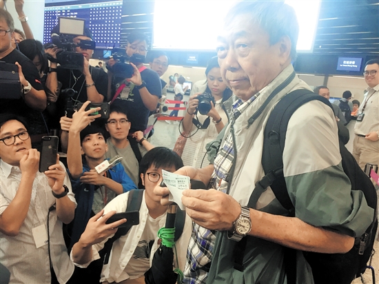 今早,香港市民梁伯展示他买到的广深港高铁车票 羊城晚报记者 陈泽云 摄