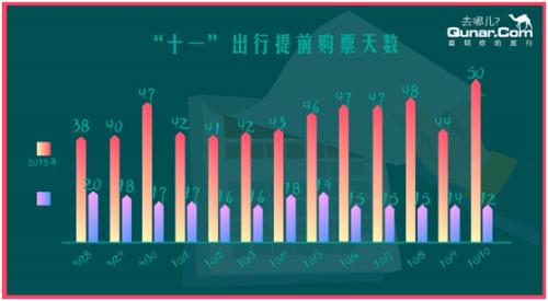 乘客今年“十一”出行在OTA去哪儿平台上平均提前购票的天数达到40天以上,其中10月10日返回的机票平均提前购票天数达到50天。而去年,“十一”期间人们提前购票的平均天数最多不过20天。
