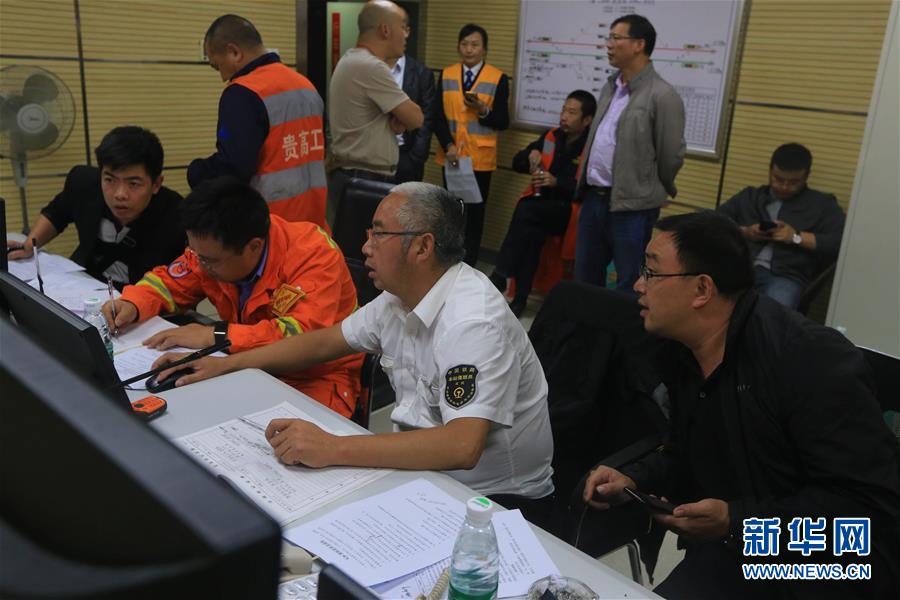 9月26日,在凯里南站,铁路工作人员在运转室内指挥演练。当日,中国铁路成都局集团公司在沪昆高铁贵州境内的凯里南至三穗区间举行模拟动车组故障应急救援演练,以检验和提高突发事件应急处理能力,迎接“十一”黄金周。新华社发(吴吉斌 摄)