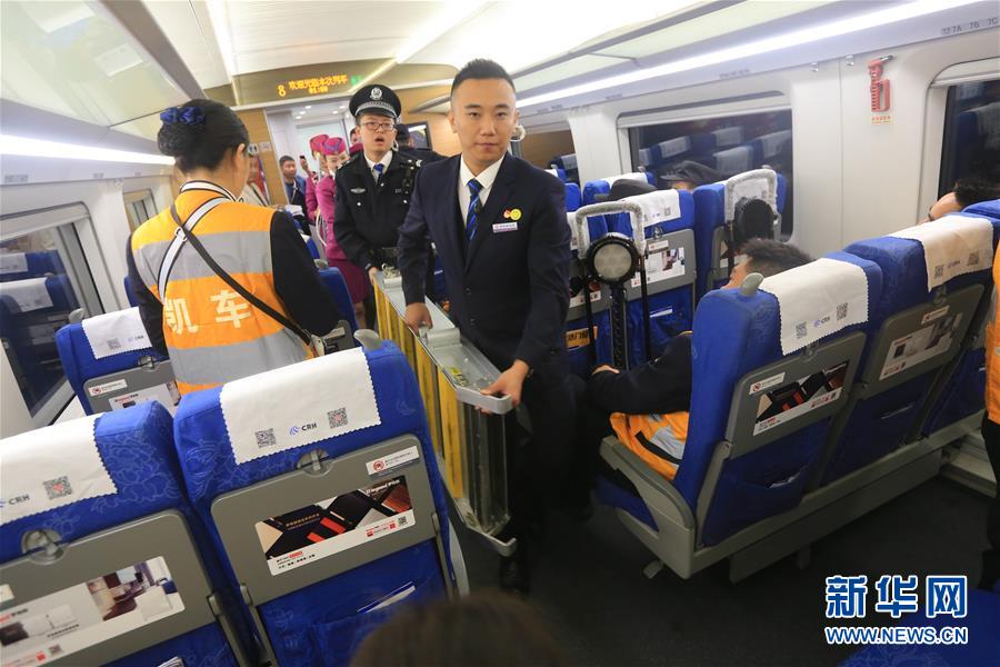 9月26日,在凯里南站,铁路工作人员进行旅客疏散换乘模拟演练。当日,中国铁路成都局集团公司在沪昆高铁贵州境内的凯里南至三穗区间举行模拟动车组故障应急救援演练,以检验和提高突发事件应急处理能力,迎接“十一”黄金周。新华社发(吴吉斌 摄)