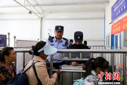 图为民警对进站旅客进行身份信息比对。 黄飞 摄