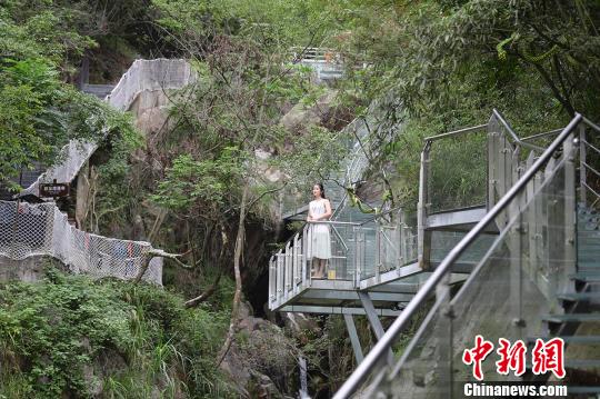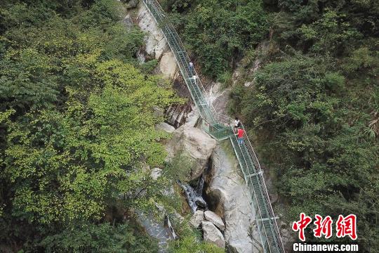 10月2日,提质改造后的湖南平江碧龙峡景区迎来了众多游人。该景区拥有世界上最长的龙形游步道,由9999片“龙鳞”组成。此次改造后的碧龙玻璃天梯,由380多块全透明台阶组成,长约300米,垂直高度约为180米,最大落差约为150米,总落差约为200米,宛如一条碧龙蜿蜒盘踞在悬崖峭壁之上。