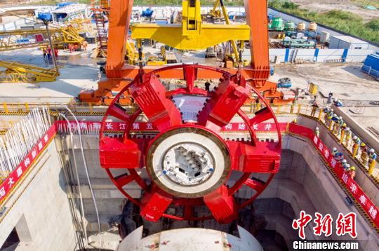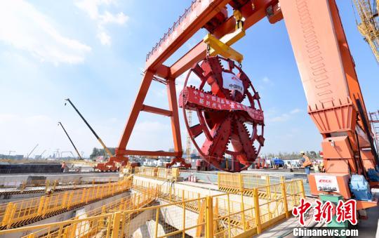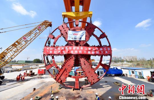 10月5日,在南京长江五桥江心洲夹江隧道施工现场,直径达15.46米、重约350吨的盾构机刀盘,被缓缓吊入盾构机始发井,标志着“新时代号”盾构机安装进入冲刺阶段。据悉,由中铁十四局南京大盾构公司承担施工的盾构机,年底前可始发掘进施工,用时五个月实现穿江而出。