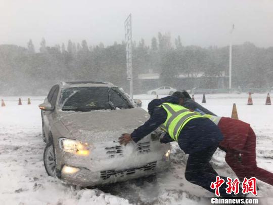 中新网乌鲁木齐10月18日电 (王小军 易清华)受冷空气影响,新疆巴州境内强降雪致多条道路通行受阻,公路养护工作人员坚守一线,奋力清雪,保障道路通畅。