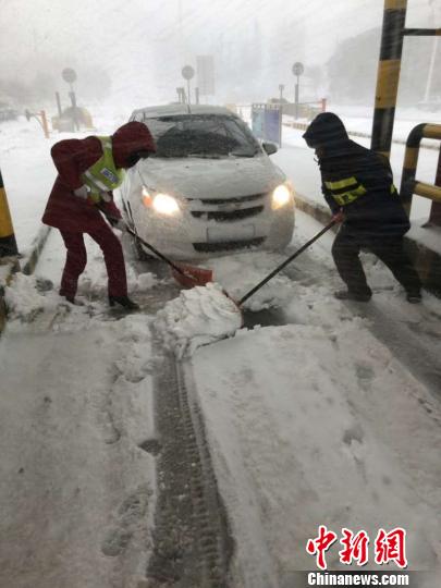 巴州境内黄水沟首收费站鹅毛般的大雪纷纷落下,整个收费站披上了一层银装。雪景虽美,但也给司乘人员出行带来了诸多不便。黄水沟收费站职工,为广大群众出行扫出一条“绿色通道”。
