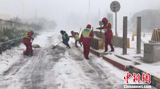 库尔勒公路管理局启动了清雪应急预案,动员在岗人员坚守一线保畅通。(库尔勒公路管理局提供) 王小军 摄