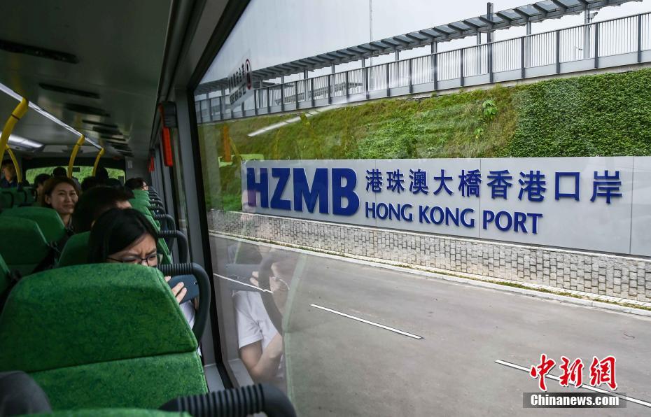 10月19日,港珠澳大桥开通在即,香港特区运输及房屋局安排传媒前往港珠澳大桥香港口岸及香港连接路进行拍摄。图为记者乘车参观大桥设施。中新社记者 麦尚旻 摄