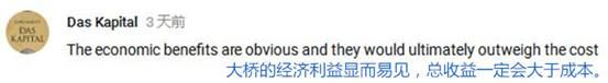 一些网友则对大桥的商业价值进行了积极评价,称道路和桥梁联通将带来贸易发展和繁荣,经济效益显而易见。