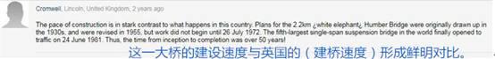 2016年6月,港珠澳大桥主体桥梁宣告成功合龙。英国《每日邮报》网站报道称,这一大桥完工后,香港、澳门和珠海之间的距离将大大缩短。外国网友在留言表赞叹的同时,也吐槽起了自己的国家。英国网友“Cromwell”评论道:“这一工程的建设速度和我们国家形成了鲜明对比。”
