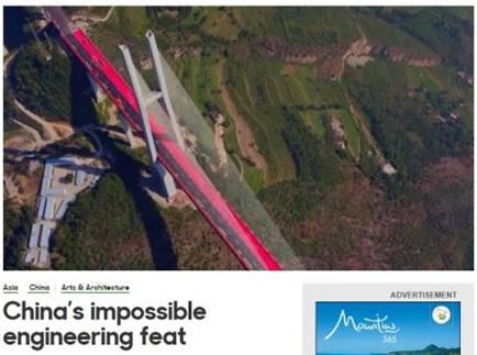 去年7月,英国广播公司(BBC)拍摄采访了目前世界上最高的大桥——中国贵州北盘江大桥。