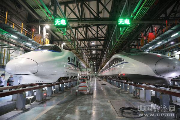 南昌西动车所,动车组等待检测。经济日报-中国经济网记者佟明彪/摄