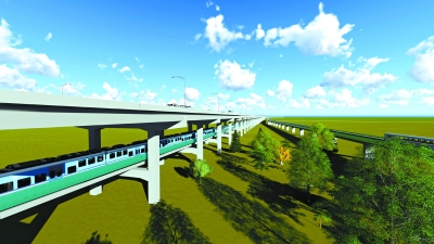 新机场轨道线路轨共构段效果图。