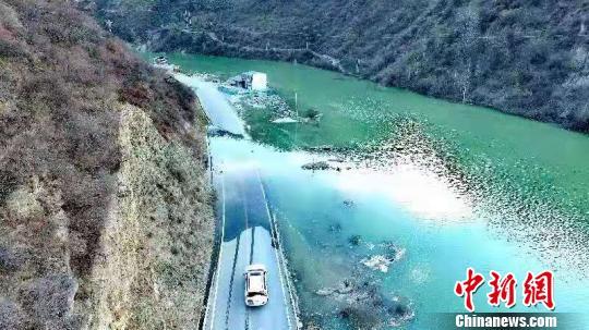 堰塞湖淹没上游道路。钟欣 摄