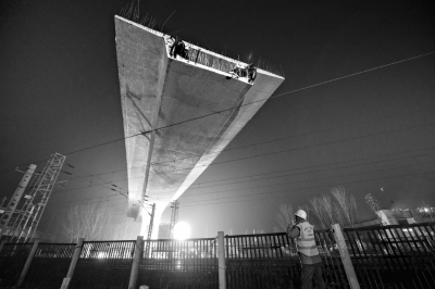 昨天凌晨2时许,随着四座桥梁转体到位,包括大兴机场高速、团河路及轨道交通新机场线在内的“三线四桥”,以同步转体的方式实现了跨越京沪铁路。