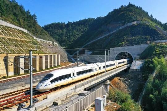 记者了解到,杭黄高铁的一大特点就是“桥多洞多”,桥隧比占到整体的80%以上。12:42分,列车通过千岛湖站,随后驶入了全长12.013公里,也是杭黄全线最长的天目山隧道。