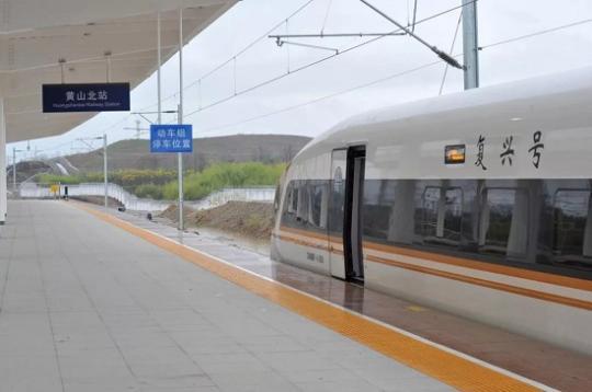 下午13:13分,试运行高铁稳稳停靠在黄山北站 吴崇远/摄