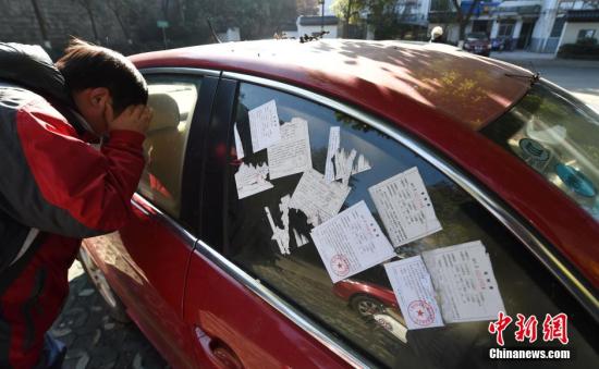 资料图:一私家车上贴满罚单。中新社记者 泱波 摄