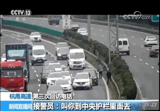 接警员:叫你到中央护栏上去,怎么还走来走去的?
