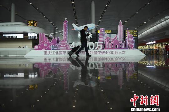 中新网重庆12月17日电 (记者 韩璐)17日,重庆江北国际机场旅客吞吐量破突破4000万人次。这也是重庆江北国际机场继2007年突破1000万人次、2012年突破2000万人次、2015年突破3000万人次后的又一次跨越。