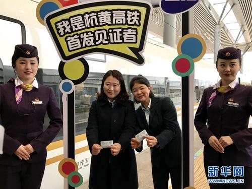 12月25日上午8点34分,从杭州发往黄山的首发车D9551发出,旅客拍照留念。新华网 韩家慧 摄