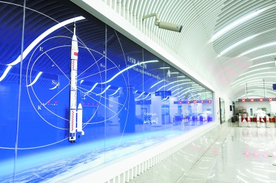 而在站厅层,一幅彩色壁画描绘了中国航天事业“从无到有”的发展历程。据了解,这幅壁画长22米,宽3米,共66平方米。壁画将以长征火箭为主视角,以星空为背景,点缀轨道线,并呈现我国航天历史大事件,凸显火箭院文化特色,既可以向大众科普航天知识,同时壁画中的各种经典公式也充满了浓郁的科技感。