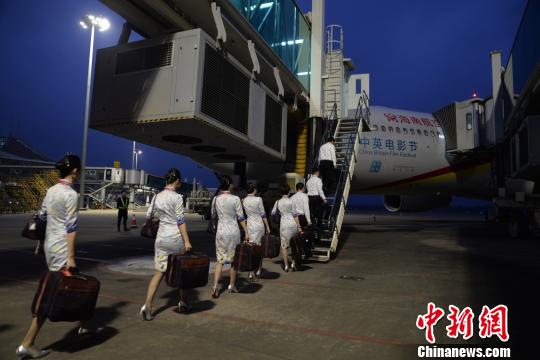 图为21日清晨,海南航空HU7181航班机组登机准备执飞任务。 宁隆宇 摄