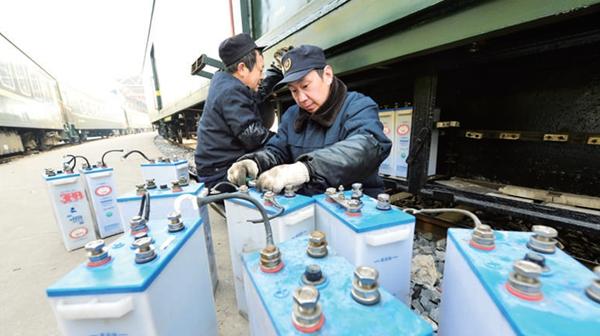 1月21日,武昌客车车辆段襄阳运用车间的工作人员检查列车设备。 安富斌摄(中经视觉)