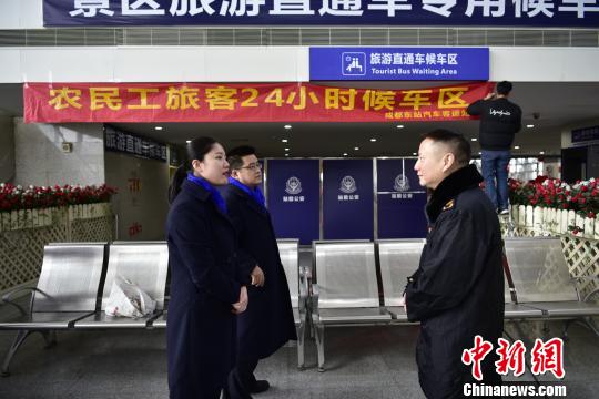 列车到达前,成都东站工作人员与长途汽车站对接农民工接驳方案。 茅磊 摄
