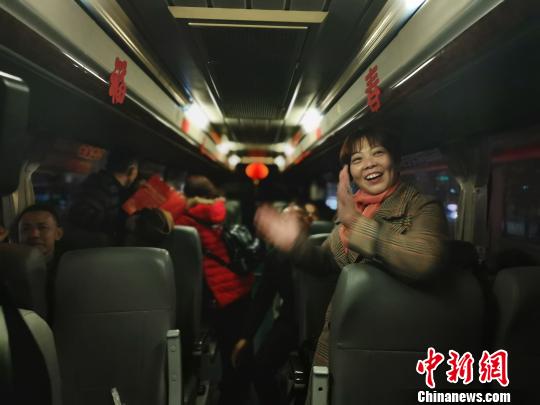 长途汽车上,返乡农民工心情愉悦,气氛热烈。 骆莉 摄