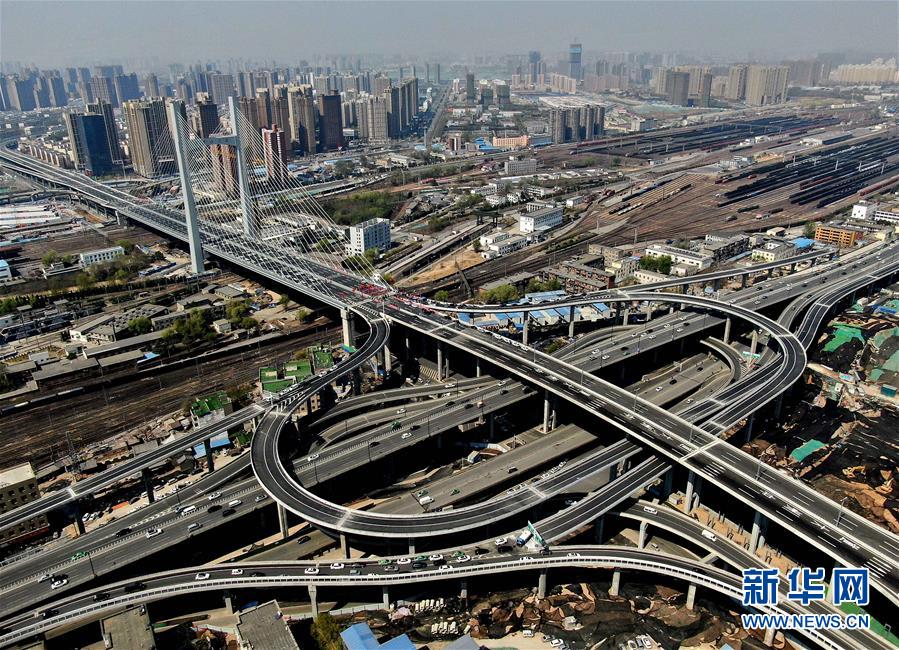 3月31日无人机拍摄的郑州市农业路大桥互通立交。