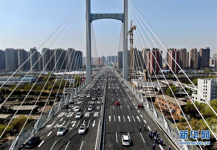 3月31日,车辆行驶在郑州市农业路大桥上(无人机拍摄)。