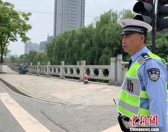 5月1日,礼为奇正在路口执勤。 张斌 摄