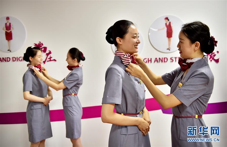 6月30日,乘务员在专项培训中进行整理着装演练。 自7月10日零时起,全国铁路将实施新的列车运行图,天津在此次调图后将首次开通直达香港的始发高铁列车。中国铁路北京局集团有限公司天津客运段在位于天津的职工实训基地对首批直达香港高铁列车工作人员进行专项培训,在人员选拔、业务培训等方面做好准备工作。 新华社发(杨宝森 摄)