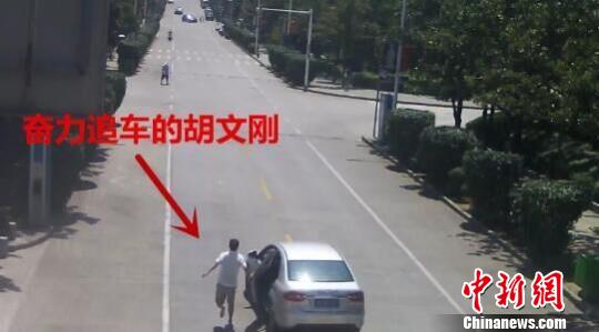 赤脚奋力追车的胡文刚 兴山公安 供图