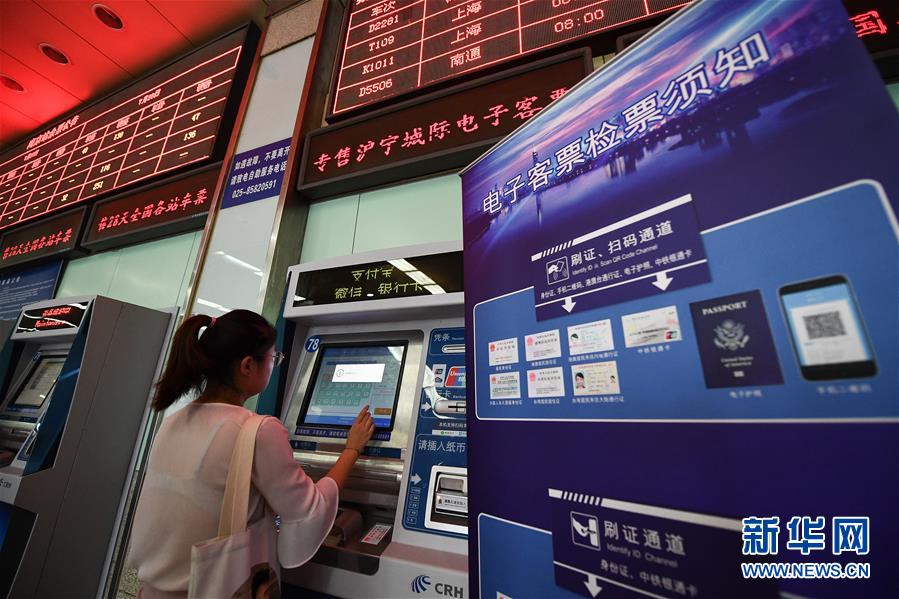 7月27日,铁路南京站购票大厅,一名旅客在自助售票机购买沪宁城际电子客票。