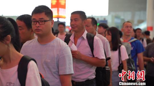 广西沿海高铁电子客票试行首日旅客排队进站。铁路供图