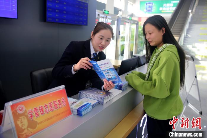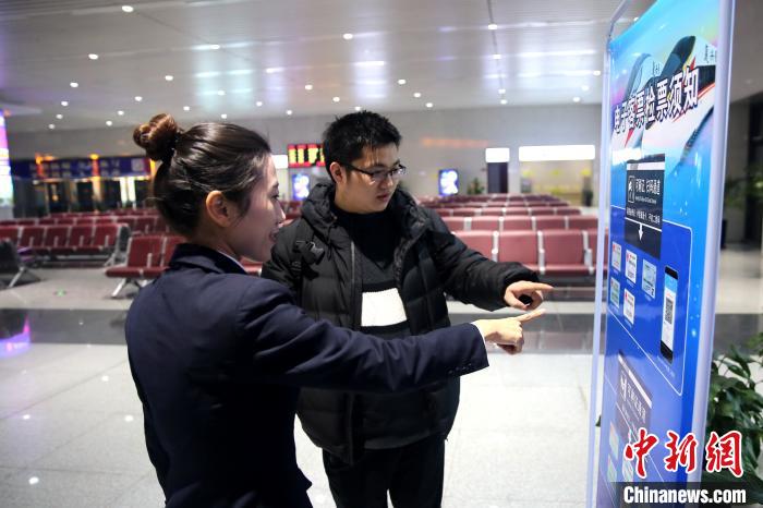 乘客向工作人员了解电子客票使用方法。 宋京 摄
