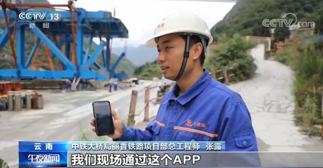 中铁大桥局丽香铁路项目部总工程师 张露:为我们丽香铁路金沙江大桥专门开发了一个软件,我们在现场通过这个APP可以实时观测钢梁吊装全过程中的它的姿态以及控制要点的实时状态,同时通过这个观测数据能满足我们现场钢梁吊装的需要。