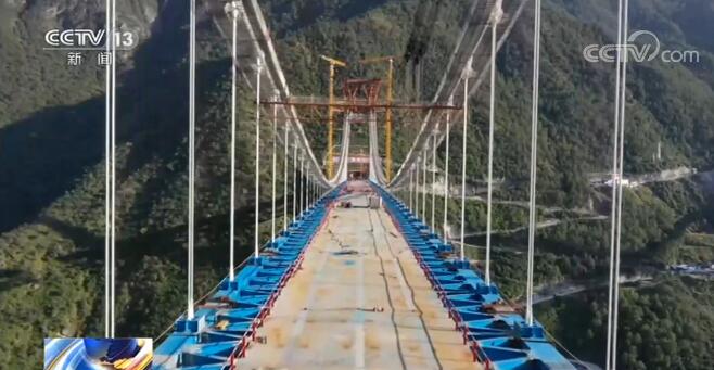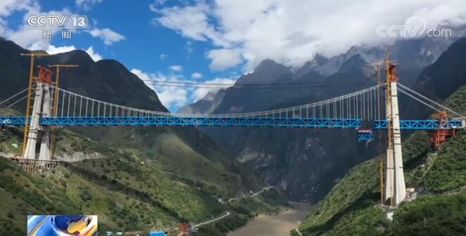 两个小时后,吊装顺利完成,经过工作人员现场测量,各项数据都符合标准要求。金沙江特大桥位于云南省丽江市与香格里拉市交界处的虎跳峡景区,横跨金沙江,全长882.5米,桥面离江面垂直距离约250米,主桥采用悬吊上承式钢桁梁悬索桥,大桥两端均与隧道连接,建成后将创铁路建设最大跨度钢桁梁悬索桥等多项国内和世界纪录。