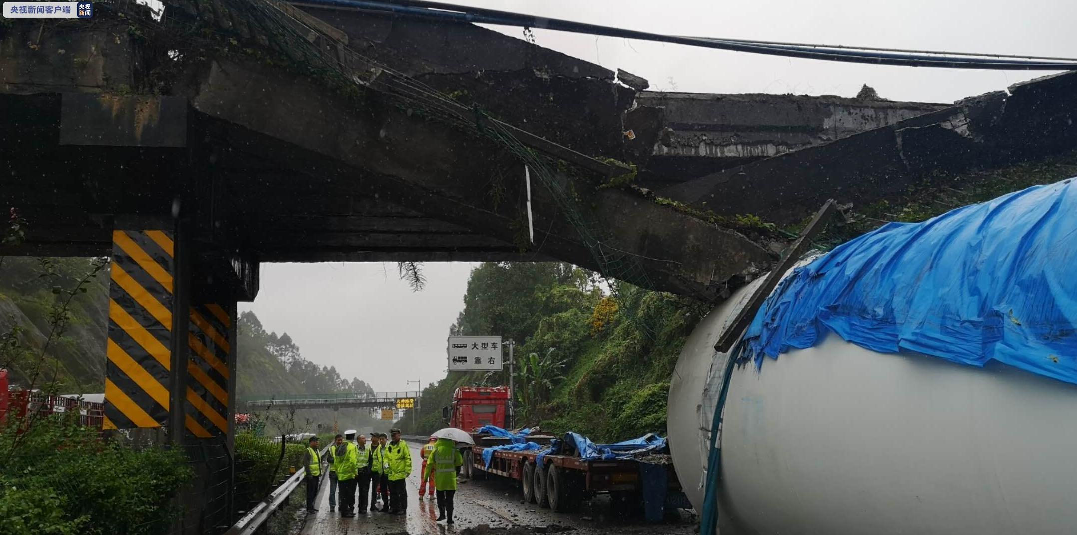 据重庆市高速执法部门消息,10月15日10时51分,G50沪渝高速公路出城方向1730KM(桂湾段)路面上方车行天桥发生垮塌。据了解,事故为一辆大件运输货车经过沪渝高速出城方向桂湾段(近洛碛段)时,与上跨沪渝高速的车行天桥发生擦挂,导致车行天桥一边梁脱落,所幸未造成人员伤亡。