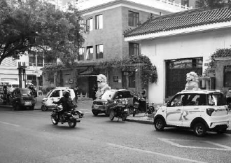 无视禁停标志的老年代步车,在鼓楼西大街也有。作为一个热门的改造街区,今年9月15日起,鼓楼西大街道路两侧全面禁止停放机动车,违停必罚。记者昨天傍晚在这里看到,高大的黄色隔离板把道路和人行道隔开,甚至连违停的条件都不再具备。但即便是这样,还是有老年代步车顶着隔离板停在路边。