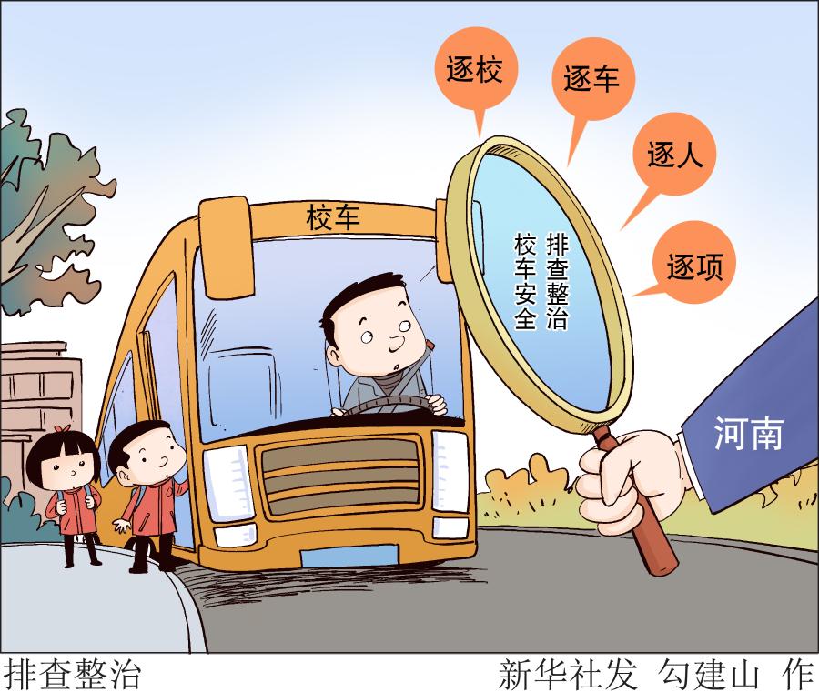 新华社郑州11月16日电(记者双瑞)河南省教育厅、公安厅、交通运输厅和应急管理厅日前联合印发通知,即日起至12月底,在全省范围内集中开展校车安全管理专项排查整治工作,通过专人盯守、限期整改、跟踪落实,切实堵塞校车管理漏洞,防范和遏制各类校车安全事故的发生。
