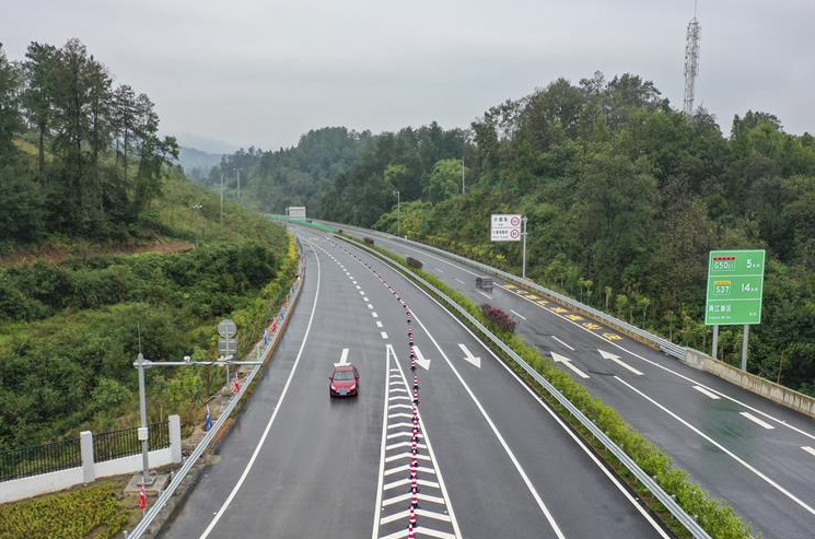 这是10月20日拍摄的重庆南两高速(无人机照片)。 当日,由贵州桥梁建设集团承建的重庆市南川区至两江新区高速公路(简称“南两高速”)正式通车(五台收费站以北约2.4公里暂不开通)。