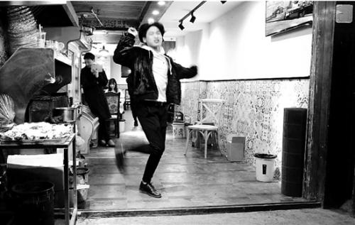 手机屏幕上跳跃着一个拉客小哥:他的舞步奇妙而任性,有点像爱尔兰踢踏舞,又似乎混搭红极一时的韩国鸟叔骑马舞,还伴随着极快的吆喝:“小姐姐吃饭吗?讨厌都不来我家吃饭。烧烤烤鱼炒菜小龙虾辣的不辣的都有……”他脚步越来越快,穿过川菜馆门口的冰箱和烧烤摊,接着加速,弓腰,急迫地招手,试图拉开大门迎接你。