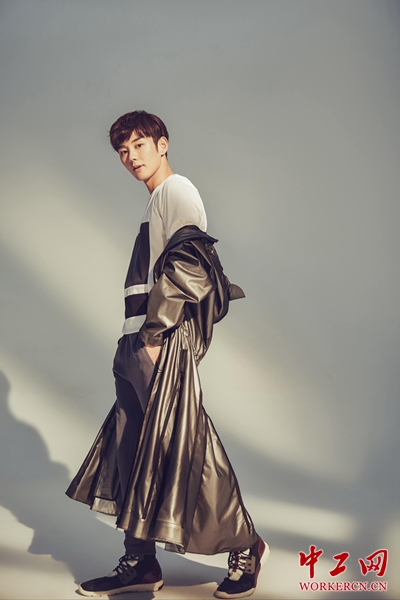 人气偶像蓝博金属感风衣写真 诠释型男运动风