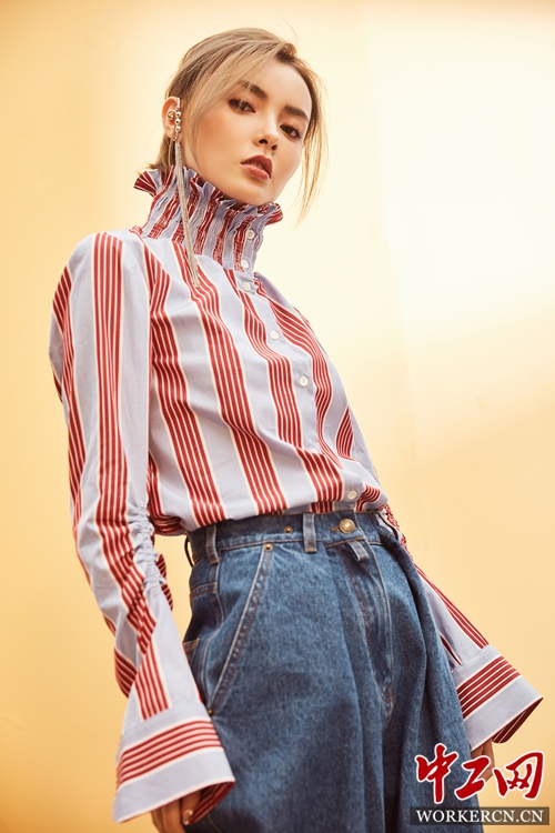 近日,时尚icon赵宇彤曝出一组复古写真。照片中,赵宇彤身穿亮色金属感条纹高领衬衫,视觉上显瘦又时髦。浅色丹宁面料阔腿裤勒出腰线,宽松的版型轻而易举的打造出“走路带风”的帅气印象。一双散发出复古印象的深口高跟鞋,亮面光泽质感为整体造型注入几分摩登格调。别出心裁的长款流苏耳饰点亮整身搭配。赵宇彤像个从十九世纪漫步而来的少女,展现十足魅力。